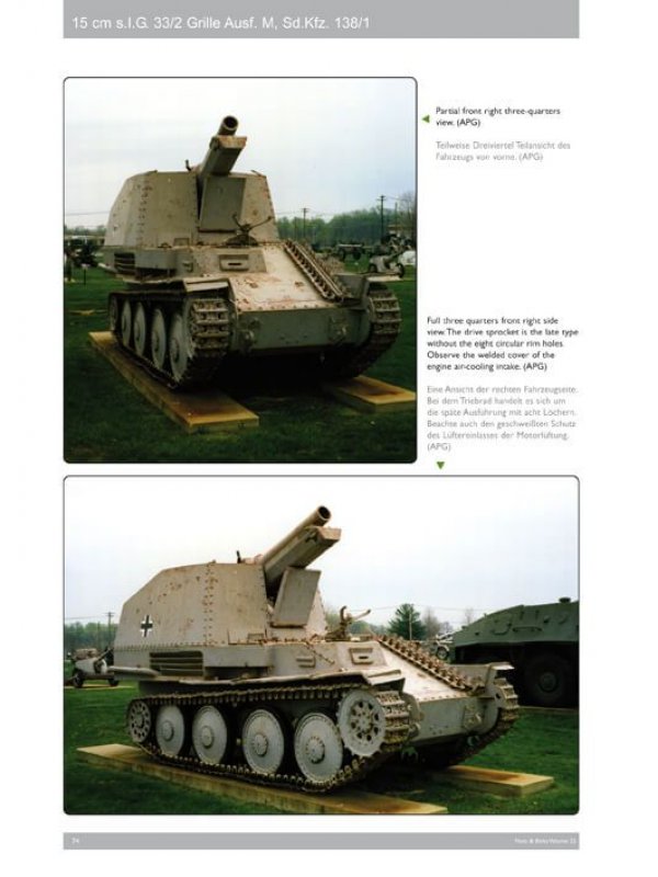 Περιγραφή: 120 σελίδες A4, δεμένες με κόλλα, περίπου 165 φωτογραφίες, από αυτές τις 43 ιστορικές λήψεις του πυροβόλου με όλες τις γνωστές παραλλαγές σε ασπρόμαυρο, πολλές από τις οποίες αδημοσίευτες· 98 έγχρωμες φωτογραφίες υπαρχόντων παραδειγμάτων του Sd.Kfz. 138/1 Ausf. M από τα μόνα δύο σωζόμενα οχήματα στο Μουσείο Πυροβολικού του Αμερικανικού Στρατού, Αμπερντίν και Μουσείο Patton, Φορτ Νοξ. 18 έγχρωμες φωτογραφίες και των δύο εκδόσεων από τον Tony Greenland, αγγλικές / γερμανικές λεζάντες, 28 σελίδες αγγλικό / γερμανικό κείμενο, 11 σελίδες σχεδίων κλίμακας από όλες τις εκδόσεις σε κλίμακα 1:35 από τον John Rue, 14 σχέδια καμουφλάζ από τον Laurent Lecocq, γραφικά τακτικών σημάνσεων και πίνακας οργάνωσης μονάδων που χρησιμοποιούν τη μάσκα (Kriegstärke-Nachweisungen KStN), πρώτη δημοσίευση στις 21 Σεπτεμβρίου 2008.